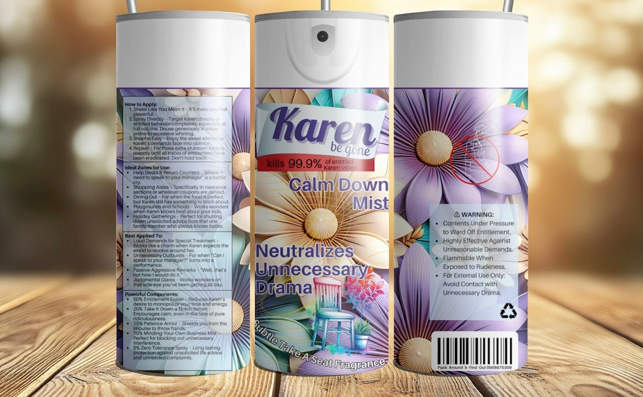 Say goodbye to unwanted drama with the Karen Be Gone Tumbler. This 20 oz powerhouse keeps your drink at the perfect temperature while silently telling the loudest Karens to take a hike. Durable, practical, and dripping with sarcasm—perfect for anyone who appreciates humor with their hydration. Stay cool, stay sassy, and let your tumbler do the talking.