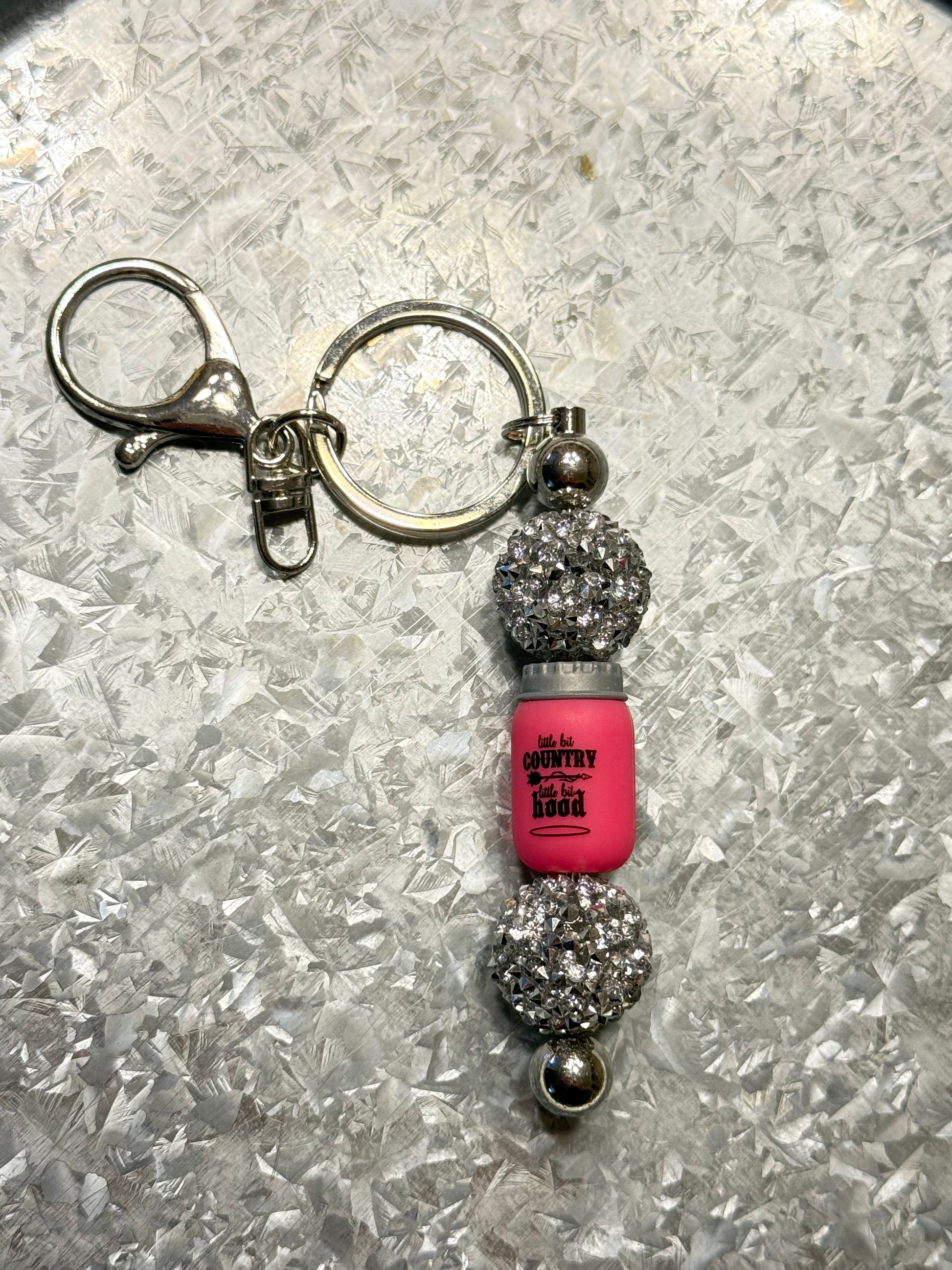 This Little Bit Country, Little Bit Hood Keychain blends rustic charm with urban flair. Crafted from durable pink silicone shaped like a mason jar, it features sparkling rhinestone beads for a touch of elegance. Lightweight and sturdy, it’s a stylish accessory that adds personality and a bit of shine to your keys or bag.